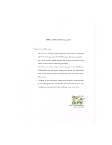 UNIKOM_Hans Ferdinand Munthe_3.Lembar Pernyataan Keaslian.pdf - Published Version