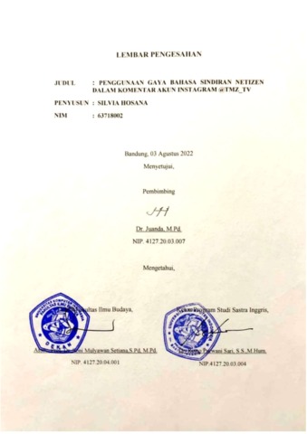 UNIKOM_SILVIA HOSANA_LEMBAR PENGESAHAN.pdf - Published Version