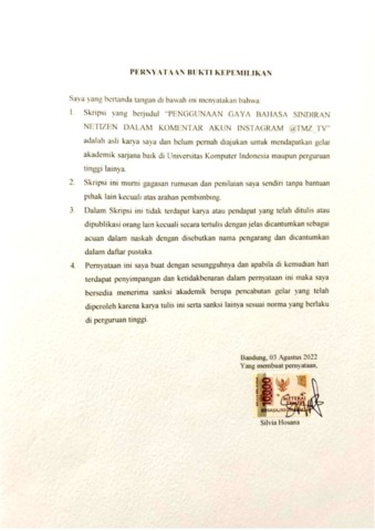 UNIKOM_SILVIA HOSANA_LEMBAR PERNYATAAN.pdf - Published Version