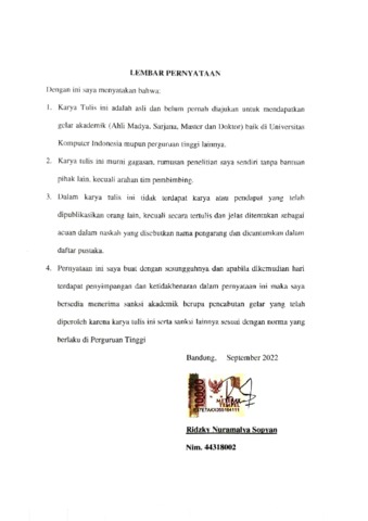 UNIKOM_Ridzky N_Lembar Pernyataan Keaslian.pdf - Published Version
