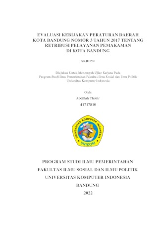 Thohir, Abdillah (2022) Evaluasi Kebijakan Peraturan Daerah Kota Bandung No 3 Tahun 2017 Tentang Retribusi Pelayanan Pemakaman Di Kota Bandung. Other thesis, Universitas Komputer Indonesia.