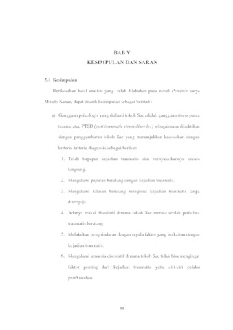 Penelitian ini bertujuan untuk meneliti gangguan psikologis yang dialami oleh tokoh Sae sebagai salah satu tokoh utama dalam novel Penance karya Minato Kanae, khususnya setelah tokoh Sae mengalami kejadian traumatis ketika masih kanak-kanak. Metode yang digunakan yaitu deskriptif kualitatif dengan kajian psikologi sastra. Sumber data yang digunakan yaitu bab pertama dari novel Penance yang berisikan sudut pandang tokoh Sae sendiri, kemudian diteliti menggunakan teori diagnosa gangguan stress pasca trauma dalam buku Diagnostic and Statistical Manual of Mental Disorders – V oleh Asosiasi Psikiatri Amerika. Objek penelitiannya berupa 26 kutipan yang menggambarkan gangguan psikologis pada tokoh yang diteliti. Hasil dari penelitian menunjukkan bahwa tokoh Sae mengalami gangguan psikologis, dengan menunjukkan gejala-gejala berupa ketakutan yang berlebihan, penghindaran, adanya amnesia disosiatif, pikiran yang terus-menerus terdistorsi dengan kejadian traumatis, serta lonjakan emosi yang tidak terkendali. Berdasarkan gejala-gejala yang tergambar maka dapat disimpulkan bahwa tokoh Sae mengalami gangguan stress pasca trauma atau PTSD, yang diakibatkan karena terpapar kejadian traumatis pada masa kanak-kanak.
