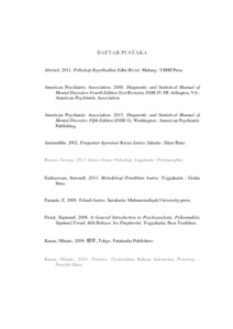 | Uncontrolled Keywords: | Tokoh Utama Novel, Karya Sastra, Gangguan Psikologis, Trauma, PTSD |