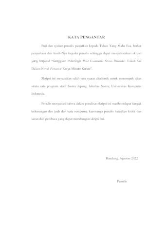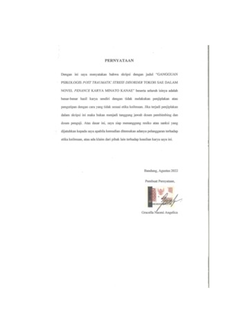Angelica, Gracella Naomi (2022) Gangguan Psikologis Post Traumatic Stress Disorder Tokoh Sae Dalam Novel Penance Karya Minato Kanae. Other thesis, Universitas Komputer Indonesia.