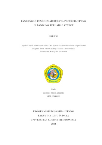 Adzania, Jasmine Inaya (2022) Pandangan Penggemar Budaya Populer Jepang Di Bandung Terhadap Vtuber. Other thesis, Universitas Komputer Indonesia.