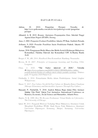 | Uncontrolled Keywords: | Vtuber, Pandangan, Budaya Populer Jepang |