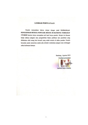 UNIKOM_JASMINE INAYA ADZANIA_LEMBAR PERNYATAAN.pdf - Published Version