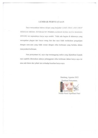UNIKOM_Nestia Nurul AP_Lembar Pernyataan.pdf - Published Version