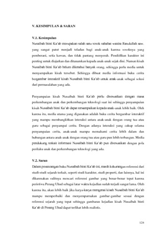 Nusaibah binti Ka’ab merupakan sahabat Rasulullah saw. yang berani, setia kawan, dan tidak mudah menyerah, sehingga kisahnya mampu menjadi inspirasi bagi anak- anak. Kisah Nusaibah binti Ka’ab belum diketahui orang banyak, hal ini dikarenakan kurangnya media atau sarana untuk menceritakan kisah Nusaibah binti Ka’ab. Oleh karena itu, perancangan media informasi dibuat untuk menceritakan kisah Nusaibah binti Ka’ab agar dapat diketahui lebih banyak orang. Media informasi yang dibuat berupa buku cerita bergambar interaktif agar penyampaian cerita dapat lebih menarik untuk anak-anak. Pendekatan visual kreatif yang digunakan yaitu dengan gaya visual ilustrasi semi realis 2 dimensi dengan adanya distorsi pada gambar untuk meniru penggambaran anak-anak dalam menggambar. Strategi dalam penyampaian cerita menggunakan pendekatan emosional yang mendorong anak-anak untuk menjadi pribadi yang pemberani, setia kawan, dan tidak mudah menyerah. Lalu gaya bahasa yang digunakan adalah gaya penyampaian naratif. Perancangan buku ini penting dilakukan sebagai media informasi sosok Nusaibah binti Ka’ab yang dapat menginspirasi dan sifat-sifatnya yang patut diteladani anak-anak.