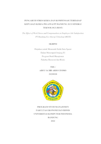 Utomo, Abuu Sa’iid Ario (2022) Pengaruh Stres Kerja Dan Kompensasi Terhadap Kepuasan Kerja Pegawai Pt Bandung Eco Sinergi Teknologi (Best). Other thesis, Universitas Komputer Indonesia.