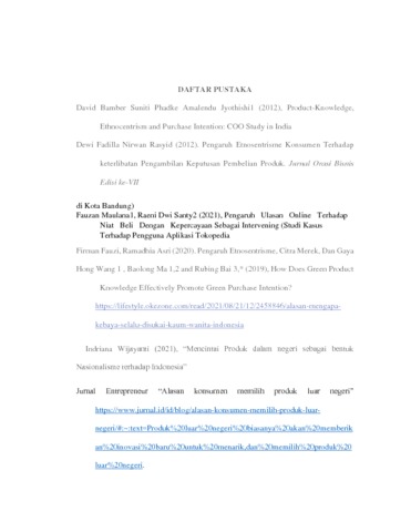 | Uncontrolled Keywords: | Etnosentrisme, Product Knowledge, dan Minat beli. |