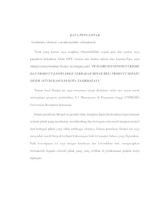 Penelitian ini menggunakan desain riset deskriptif dan verifikatif dengan pendekatan kuantitaf, dengan perhitungan regresi linier berganda dan uji asumsi klasik dengan menggunakan software SPSS. Populasi dalam penelitian ini adalah konsumen yang melakukan pembelian produk sepatu Eiger di Tasik, dengan sampel 96 responden. Data yang digunakan adalah data Primer dan Sekunder. Hasil dari penelitian ini menunjukkan bahwa secara parsial Etnosentrisme berpengaruh dan signifikan terhadap Minat beli, secara parsial Product Knowledge berpengaruh dan signifikan terhadap Minat beli, dan secara simultan Etnosentrisme dan Product Knowledge berpengaruh dan signifikan terhadap Minat beli sepatu Eiger di Tasikmalaya.