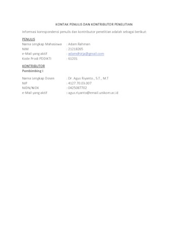16. UNIKOM_ADAM RAHMAN_KONTAK PENULIS DAN KONTRIBUTOR PENELITIAN.pdf - Published Version