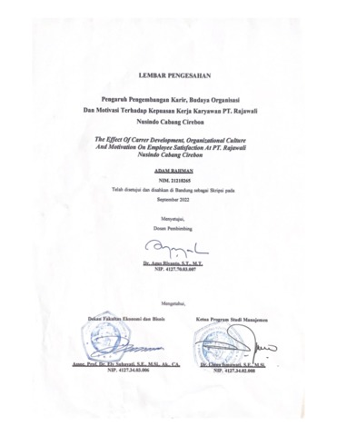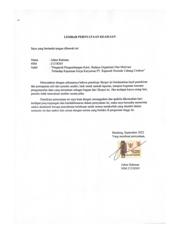 Rahman, Adam (2022) Pengaruh Pengembangan Karir, Budaya Organisasi, Dan Motivasi Terhadap Kepuasan Kerja. Other thesis, Universitas Komputer Indonesia.