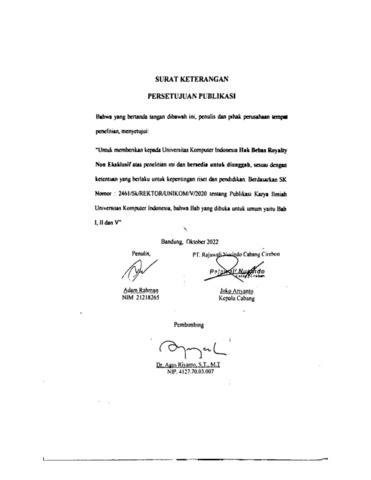 3. UNIKOM_ADAM RAHMAN_LEMBAR KETERANGAN PERSETUJUAN PUBLIKASI.pdf - Published Version