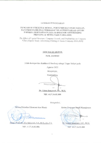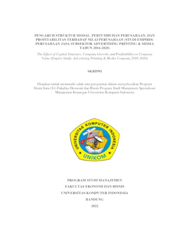 Akmal, Afif Fauzi (2022) Pengaruh Struktur Modal, Pertumbuhan Perusahaan, Dan Profitabilitas Terhadap Nilai Perusahaan (Studi Empiris: Perusahaan Jasa Subsektor Advertising Printing & Media Tahun 2016-2020). Other thesis, Universitas Komputer Indonesia.