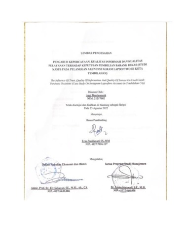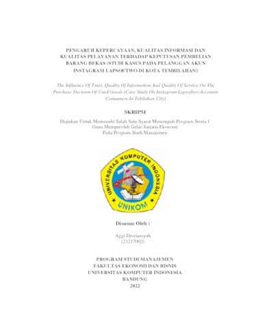Desriansyah, Aggi (2022) Pengaruh Kepercayaan, Kualitas Informasi Dan Kualitas Pelayanan Terhadap Keputusan Pembelian Barang Bekas (Studi Kasus Pada Pelanggan Akun Instagram Lapsoftwo Di Kota Tembilahan). Other thesis, Universitas Komputer Indonesia.