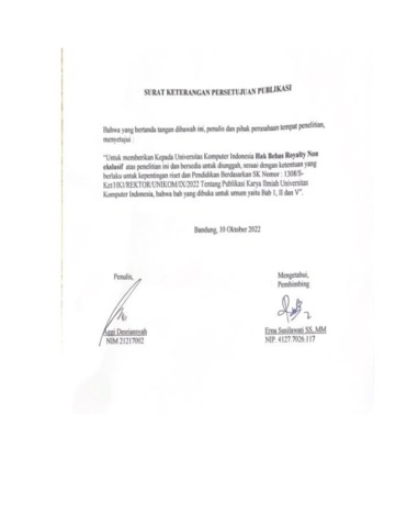 UNIKOM_Aggi Desriansyah_Surat Keterangan Persetujuan Publikasi.pdf - Published Version