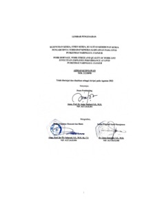 | Uncontrolled Keywords: | Kejenuhan kerja, stres kerja, kualitas kehidupan kerja, kinerja karyawan. |