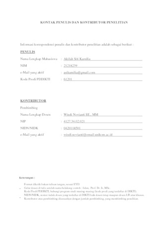 UNIKOM_AKIFAH SITI KAMILIA_KONTAK PENULIS DAN KONTRIBUTOR PENELITIAN.pdf - Published Version