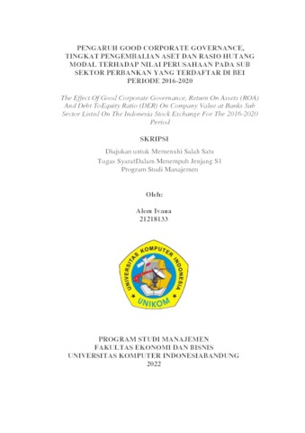 Ivana, Alem (2022) Pengaruh Good Corporate Governance, Tingkat Pengembalian Aset Dan Rasio Hutang Modal Terhadap Nilai Perusahaan Pada Sub Sektor Perbankan Yang Terdaftar Di Bei Periode 2016-2020. Other thesis, Universitas Komputer Indonesia.
