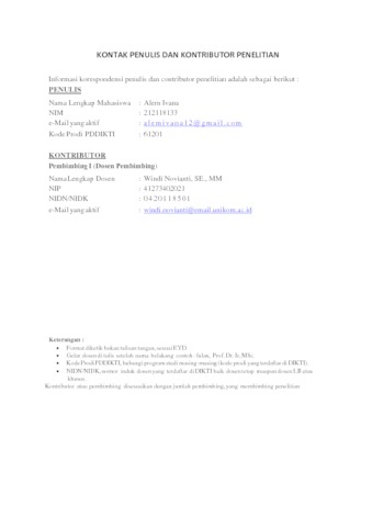 UNIKOM_ALEM IVANA_LEMBAR KONTAK DAN KONTRIBUTOR.pdf - Published Version