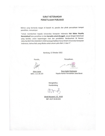 UNIKOM_ALEM IVANA_LEMBAR KETERANGAN PERSETUJUAN PUBLIKASI.pdf - Published Version