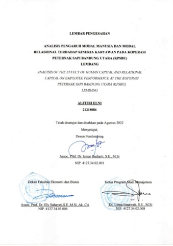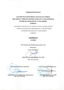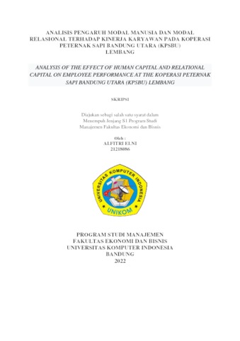 Elni, Alfitri (2022) Analisis Pengaruh Modal Manusia Dan Modal Relasional Terhadap Kinerja Karyawan Pada Koperasi Peternak Sapi Bandung Utara (Kpsbu) Lembang. Other thesis, Universitas Komputer Indonesia.