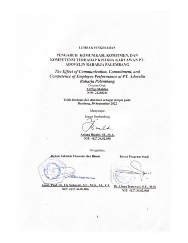 | Uncontrolled Keywords: | Komunikasi, Komitmen, Kompetensi, dan Kinerja Karyawan. |