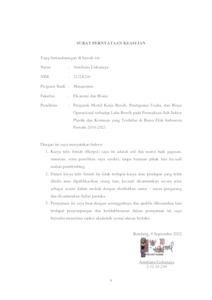 | Uncontrolled Keywords: | Modal Kerja Bersih, Pendapatan Usaha, Biaya Operasional, dan Laba Bersih |