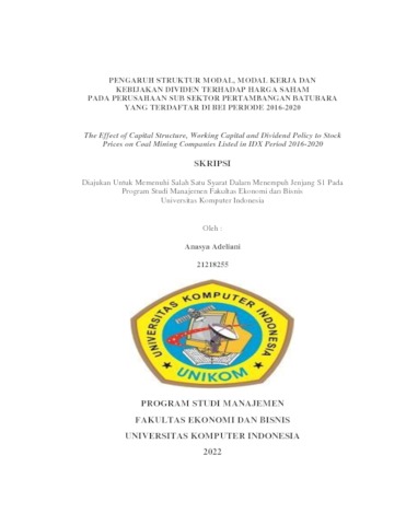 Adeliani, Anasya (2022) Pengaruh Struktur Modal, Modal Kerja Dan Kebijakan Dividen Terhadap Harga Saham Pada Perusahaan Sub Sektor Pertambangan Batubara Yang Terdaftar Di Bei Periode 2016-2020. Other thesis, Universitas Komputer Indonesia.