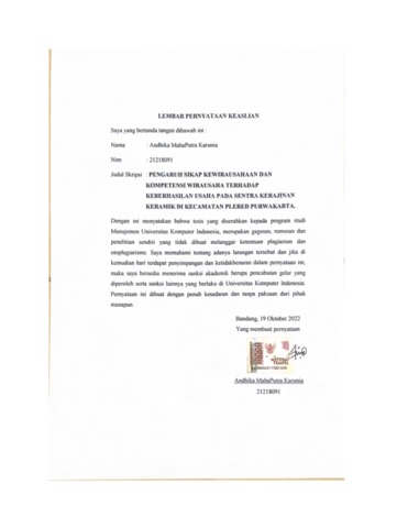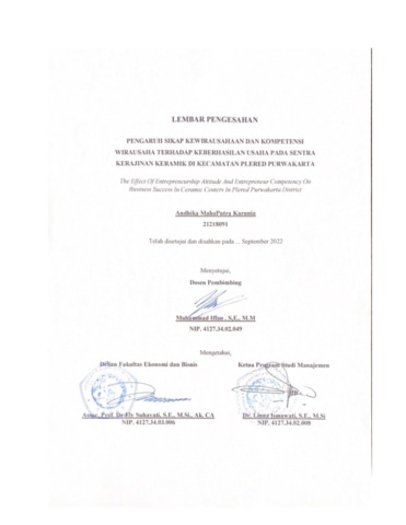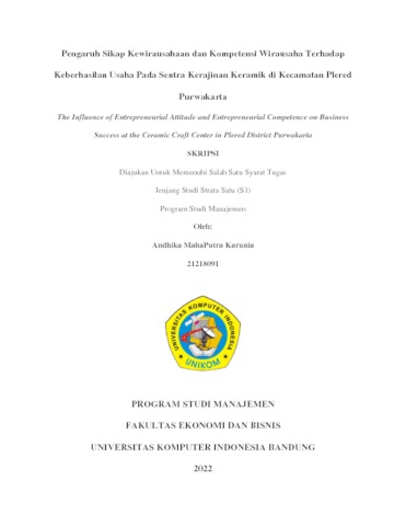 Karunia, Andhika MahaPutra (2022) Pengaruh Sikap Kewirausahaan dan Kompetensi Wirausaha Terhadap Keberhasilan Usaha Pada Sentra Kerajinan Keramik di Kecamatan Plered Purwakarta. Other thesis, Universitas Komputer Indonesia.