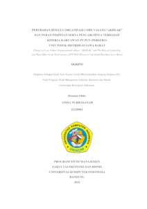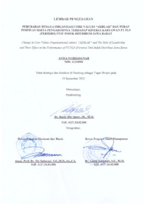 Nurhasanah, Anisa (2022) Perubahan Budaya Organisasi Core Values “Akhlak” Dan Peran Pimpinan Serta Pengaruhnya Terhadap Kinerja Karyawan Pt Pln (Persero) Unit Induk Distribusi Jawa Barat. Other thesis, Universitas Komputer Indonesia.