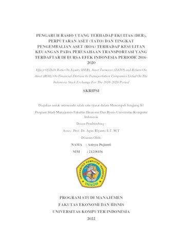 Pujianti, Anisya (2022) Pengaruh Rasio Utang (DER), Perputaran Aset (TATO) dan Tingkat Pengembalian Aset (ROA) Terhadap Kesulitan Keuangan Pada Perusahaan Transportasi yang Terdaftar di Bursa Efek Indonesia Periode 2016-2020. Other thesis, Universitas Komputer Indonesia.
