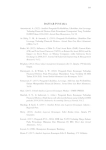 | Uncontrolled Keywords: | Rasio Utang (DER), Perputaran Aset (TATO), Tingkat Pengembalian Aset (ROA), Kesulitan Keuangan |