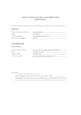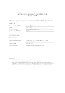 UNIKOM_ANISYA PUJIANTI_LEMBAR KONTAK PENULIS DAN KONTRIBUTOR.pdf - Published Version