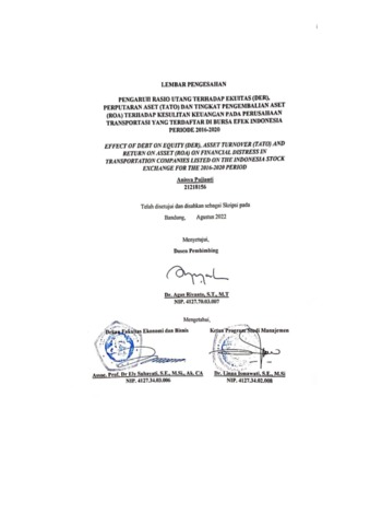 Penelitian ini ditunjukan untuk mengetahui pengaruh Rasio Utang (DER), Perputaran Aset (TATO) dan Tingkat Pengembalian Aset (ROA) Terhadap Kesulitan Keuangan Pada Perusahaan Transportasi yang Terdaftar di Bursa Efek Indonesia Periode 2016-2020 Metode pendekatan analisis berupa pendekatan kuantitatif serta metode deskriptif dan verivikatif. Sampel yang digunakan dalam penelitian ini merupakan laporan keuangan periode 2016 hingga 2020 dengan 6 perusahaan adalah sebanyak 30 sampel. Alat analisis yang digunakan dalam penelitian ini yaitu analisis jalur (Path Analysis), pengujian asumsi klasik, pengujian koefisien korelasi, pengujian koefisien determinasi dan pengujian hipotesis dengan mempergunakan program aplikasi SPSS v26 Hasil penelitian ini menunjukan bahwa hasil Uji T Rasio Utang (DER) berpengaruh signifikan terhadap Kesulitan Keuangan,Peputaran Aset (TATO) tidak berpengaruh signifikan terhadap Kesulitan Keuangan dan Tingkat Pengembalian Aset (ROA) tidak berpengaruh signifikan terhadap Kesulitan Keuangan. Dan hasil dari Uji F adalah terdapat pengaruh Rasio Utang (DER), Perputaran Aset (TATO), Tingkat Pengembalian Aset (ROA), terhadap Kesulitan Keuangan