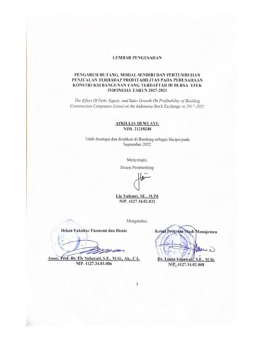 Sari, Aprillia Dewi Ayu Permata (2022) Pengaruh Hutang, Modal Sendiri Dan Pertumbuhan Penjualan Terhadap Profitabilitas Pada Perusahaan Konstruksi Bangunan Yang Terdaftar Di Bursa Efek Indonesia Tahun 2017-2021. Other thesis, Universitas Komputer Indonesia.