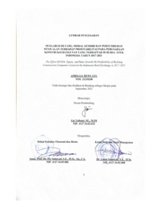 | Uncontrolled Keywords: | Profitabilitas, Hutang, Modal Sendiri, Pertumbuhan Penjualan |