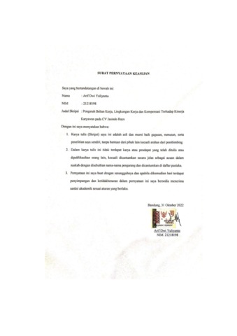 UNIKOM_ARIF DWI YULIYANTO_3_ LEMBAR PERNYATAAN KEASLIAN.pdf - Published Version