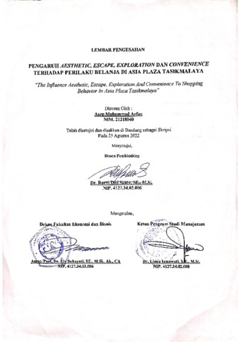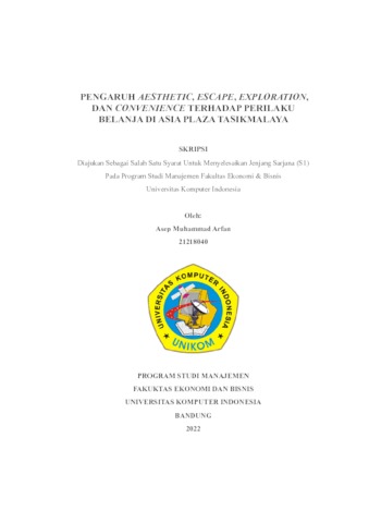 Arfan, Asep Muhammad (2022) Pengaruh Aesthetic, Escape, Exploration, Dan Convenience Terhadap Perilaku Belanja Di Asia Plaza Tasikmalaya. Other thesis, Universitas Komputer Indonesia.