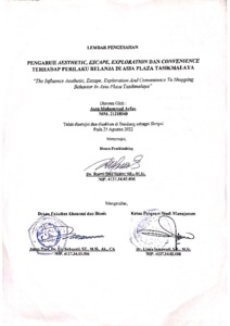 | Uncontrolled Keywords: | Aesthetic, Escape, Exploration, Convenience dan Perilaku Belanja |