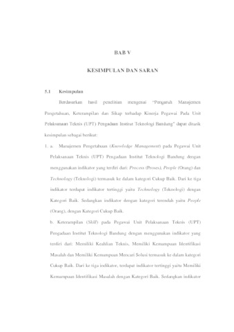 Hasil penelitian deskriptif menunjukkan bahwa manajemen pengetahuan, keterampilan, sikap dan kinerja pegawai Unit Pelaksanaan Teknis (UPT) Pengadaan Institut Teknologi Bandung dinilai baik. Sementara hasil penelitian verifikatif menunjukkan bahwa manajemen pengetahuan berpengaruh terhadap kinerja pegawai Unit Pelaksanaan Teknis (UPT) Pengadaan Institut Teknologi Bandung, keterampilan berpengaruh terhadap kinerja pegawai Unit Pelaksanaan Teknis (UPT) Pengadaan Institut Teknologi Bandung, sikap berpengaruh terhadap kinerja pegawai Unit Pelaksanaan Teknis (UPT) Pengadaan Institut Teknologi Bandung. Manajemen Pengetahuan, Keterampilan dan Sikap secara simultan berpengaruh terhadap kinerja pegawai Unit Pelaksanaan Teknis (UPT) Pengadaan Institut Teknologi Bandung.