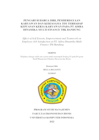 Belianti, Bella (2022) Pengaruh Harga Diri, Pemberdayaan Karyawan Dan Kerjasama Tim Terhadap Kepuasan Kerja Karyawan Pada Pt Adira Dinamika Multi Finance Tbk Bandung. Other thesis, Universitas Komputer Indonesia.