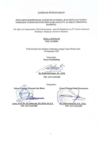 Septiani, Bella (2022) Pengaruh Kompensasi, Lingkungan Kerja Dan Kepuasan Kerja Terhadap Turnover Intention Karyawan Pt. Scarlet Indonesia Bandung. Other thesis, Universitas Komputer Indonesia.