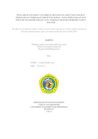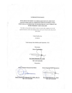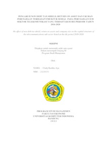 Kartika Ayu, Cindy (2022) Pengaruh Non Debt Tax Shield, Return On Asset Dan Ukuran Perusahaan Terhadap Struktur Modal Pada Perusahaan Sub Sektor Telekomunikasi Yang Terdaftar Di Bei Periode Tahun 2016-2020. Other thesis, Universitas Komputer Indonesia.