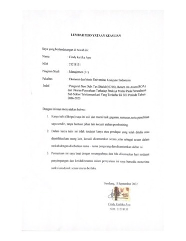 UNIKOM_CINDY KARTIKA AYU_LEMBAR PERNYATAN KEASLIAN.pdf - Published Version