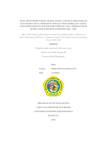 Fadlianti, Debi Sintia (2022) Pengaruh Perputaran Modal Kerja, Ukuran Perusahaan Dan Rasio Cepat Terhadap Tingkat Pengembalian Asset Pada Perusahaan Sub Sektor Farmasi Yang Terdaftar Di Bursa Efek Indonesia Periode 2016 – 2020. Other thesis, Universitas Komputer Indonesia.