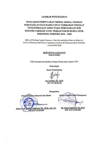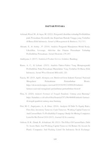 | Uncontrolled Keywords: | Perputaran Modal Kerja, Ukuran Perusahaan, Rasio Cepat, Tingkat Pengembalian Aset |