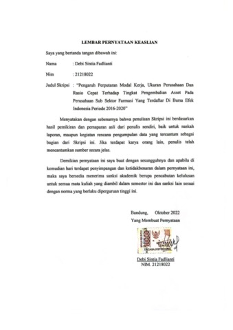 UNIKOM_Debi Sintia Fadlianti_LEMBAR PERNYATAAN KEASLIAN.pdf - Published Version
